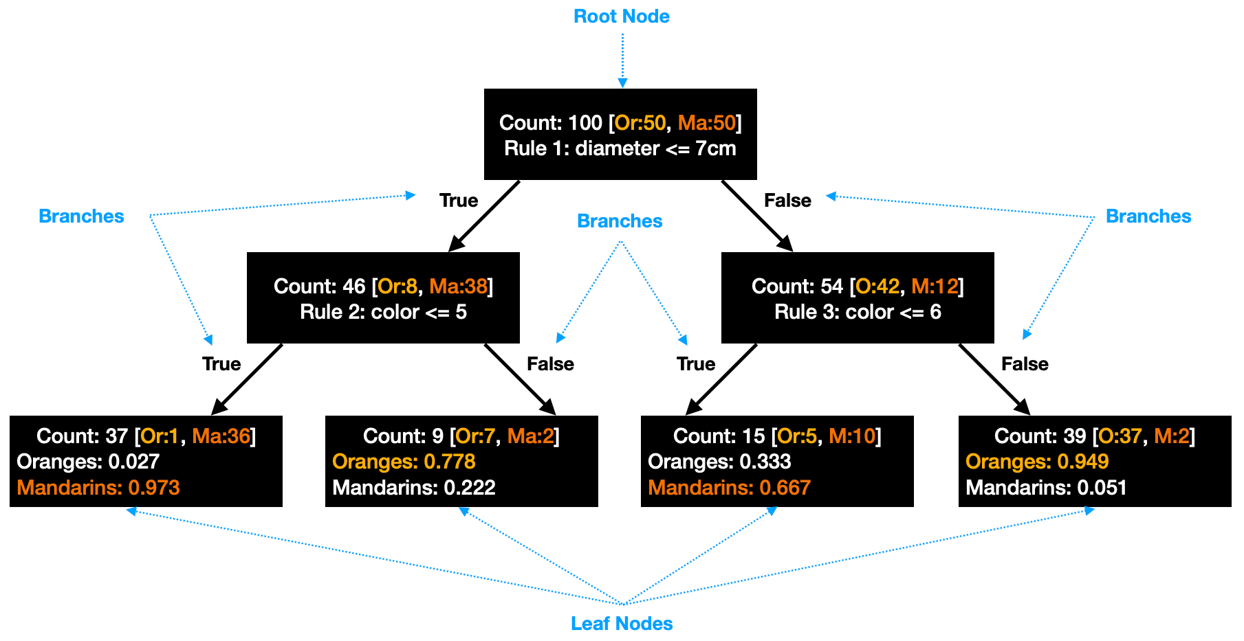 .by the model.<br />although a confusion matrix provides the information needed to determine how well a classification model perform, summarizing (none leaf node) denotes a test on an attribute, each branch represents an outcome of the test and each leaf node (terminal node) holds a class label.